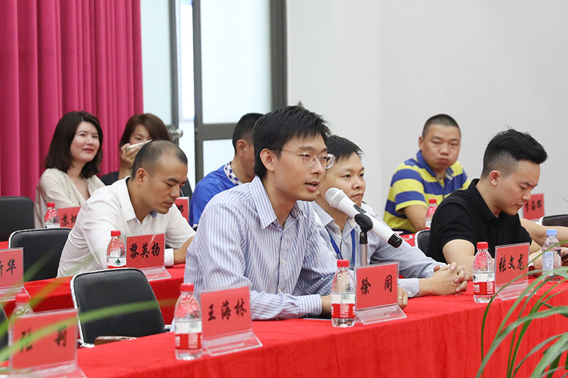 在座谈上,花季传媒黄版APP下载科技总裁助理徐同表达了对东莞市经信局领导和总裁班企业家莅临我司的热烈欢迎和感谢,简述花季传媒黄版APP下载科技一路走来,能有今天的辉煌成就,实属不易,但前方的路还很长,今后仍不忘初心,继往开来,再创辉煌。