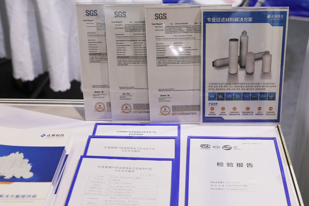 展会上,公司展示了最新的过滤解决方案,包括聚丙稀熔喷滤芯、大流量折叠滤芯、囊式过滤器、尼龙折叠滤芯、聚醚砜折叠滤芯、聚四氟乙烯折叠滤芯等产品。