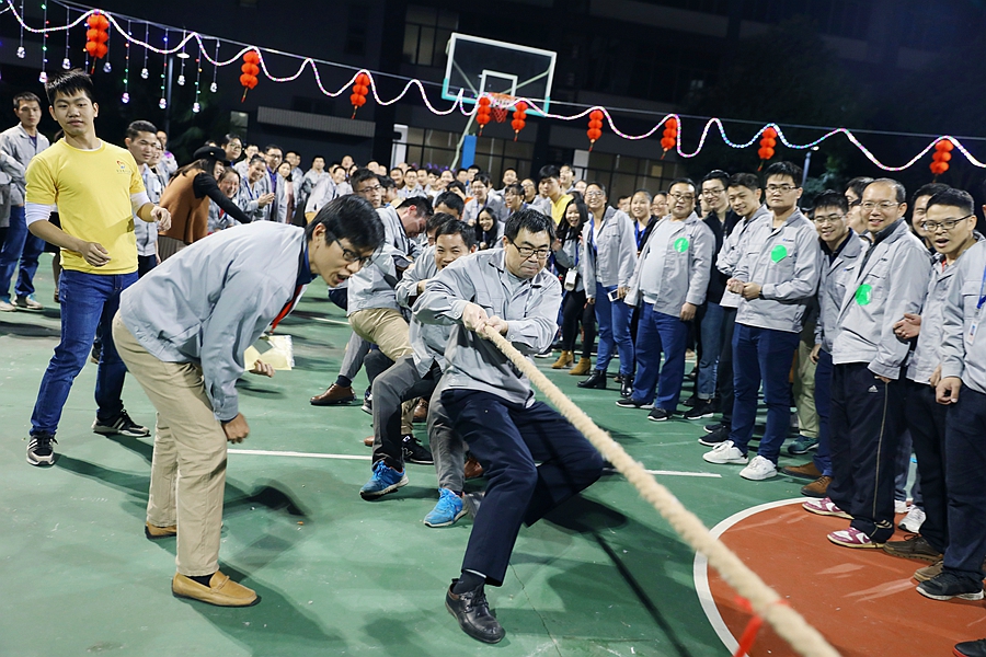 第一个游戏环节是拔河比赛。共有6支队伍参加比赛,最后由技术中心/中央研究院/财务中心组成的牛牛队获得了拔河比赛的冠军。
