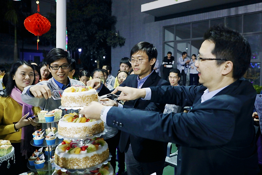 技术中心梅总、市场中心同总为寿星们切蛋糕