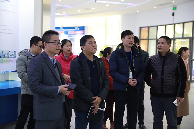 ▲ 松山湖管委会委员、企业党委书记黄乐瑜一行参观花季传媒黄版APP下载科技产品展示厅