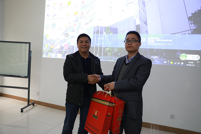 2018年2月1日下午,松山湖管委会委员、企业党委书记黄乐瑜,企业党委专职副书记、组织人事办副主任徐立青,群团工作局副局长魏扬等领导一行莅临广东花季传媒黄版APP下载科技股份有限公司慰问企业党员职工,与花季传媒黄版APP下载科技党支部进行了座谈交流,诚恳地为花季传媒黄版APP下载科技党支部的党建出谋划策,提出了诸多良好建议,并为花季传媒黄版APP下载科技党员职工赠送慰问礼品,送来热情的节日问候。