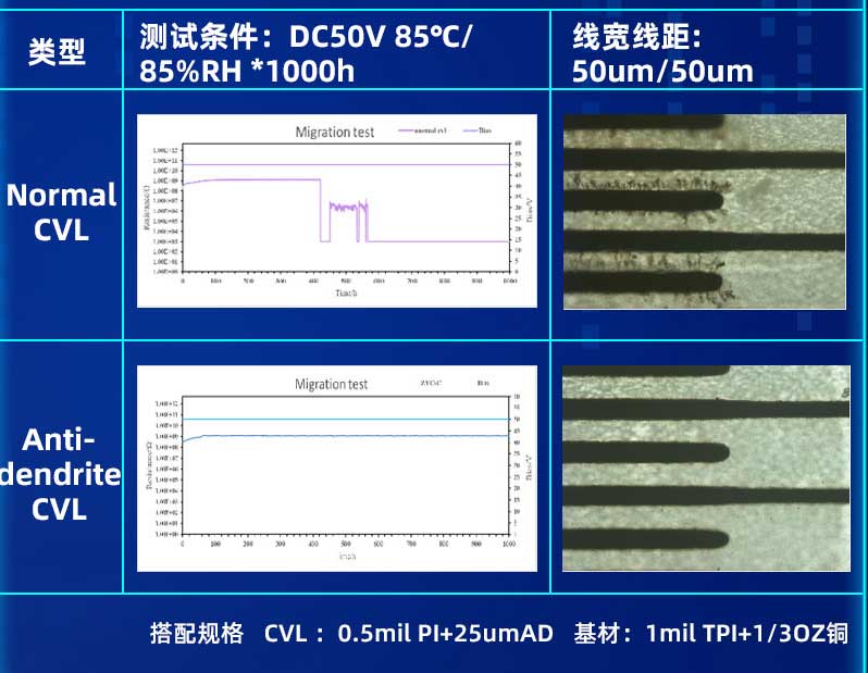 Anti-dendrite产品具有较Normal产品更低的卤素水准,更耐离子迁移。